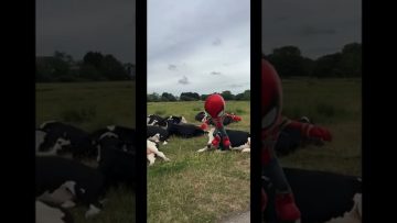 Spidey Cow Jump and Landing on a cow. Spidey and His Amazing Friends in real life 3d animation Augment reality Teen Spider-Man in Ma...